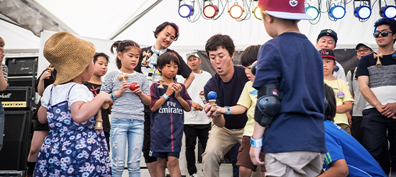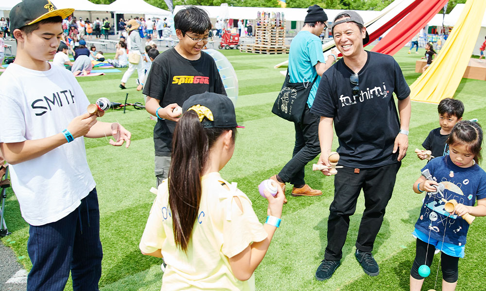 けん玉体験エリアでは、達人レベルのスタッフが常時在籍し、基本の持ち方から上級技まで丁寧にレクチャーします!貸し出し用のけん玉も十分にご用意しておりますので、一度に多くの方にご体験いただけます。
